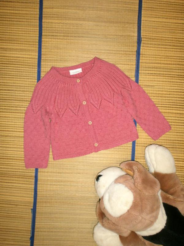 Гарна кофточка для малятка. Застібається на ґудзики. Красиве в'язання. Колір трохи спотворений. Бавовна. Стан ідеальний. Товар у ціновій категорії до 120 грн. включно без торгу. довжина від верхньої точки плеча — 27,5 довжина від пахви — 13,5 рукав від горловини - 31 ширина - 23,5 100% предоплата. Доставка НП, Укрпошта. Оплата за доставку під час отримання. Без обміну та повернення.