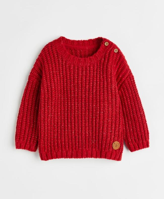 Свитер в рубчик из мягкого хлопка. Пуговицы на одном плече, слегка приспущенные плечи и трикотажная резинка на вырезе горловины, манжетах и по низу. замеры, ширина в плечах 36 ширина в подмышках 34 рукав 25 длина 36