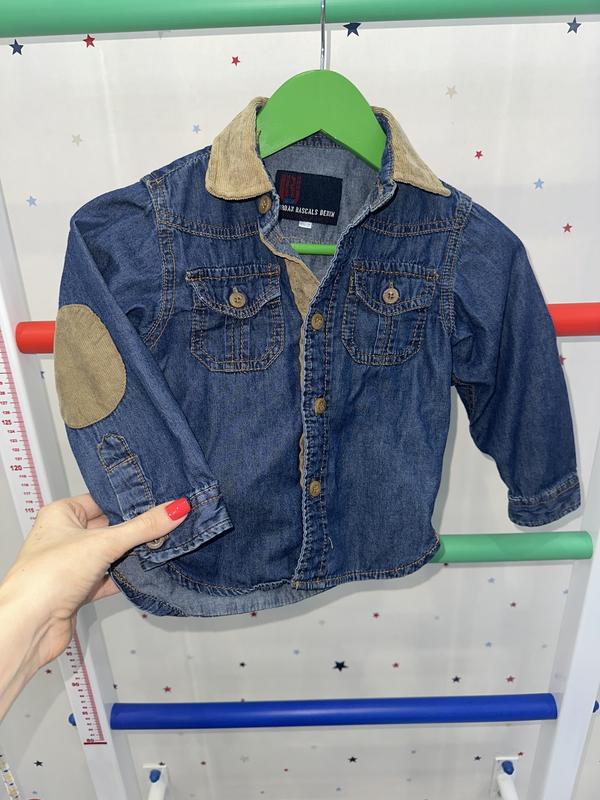 Рубашка из тонкого джинса, мягкая легкая и стильная в идеальном состоянии. На возраст 1,5-2 рнышка. Стильно смотрится в растекаемом виде с футболкой