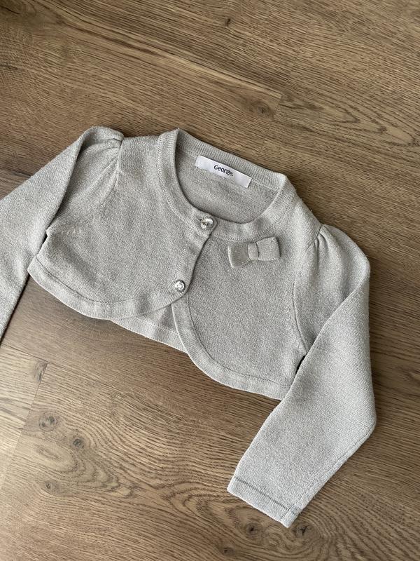 Серебристое болеро George на 1-1,5 рочков, с бантиком и пуговицами в виде бриллиантов. Размер 81-86см. Замеры дамас.