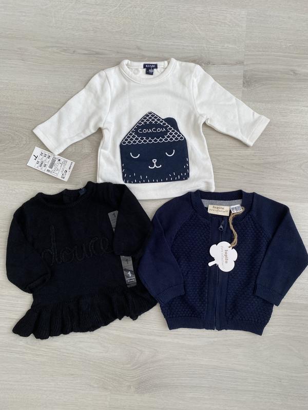 Новейшие кофточки на спящий размер 0-1, цена за все вещи 90 грн. 30 грн. печь если брать все вместе. Отдельно белая - 65 грн. Синяя - 50 грн. Черная - 30 грн.