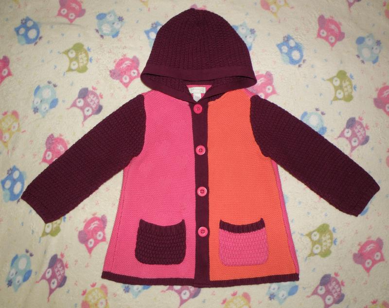 Яркая кофточка First Impressions, б/у, оригинал с американского сайта. Размер 24 мес., немного крупномерная. Состав: 60% хлопок, 40% акрил. Мягкий и приятный трикотаж. Красивая вязка различной фактуры. Качество отличное. Состояние очень хорошее. Цена - 130 грн. Замеры: длина - 43 см, ширина под подмышками - 32 см, рукав от плеча - 35 см, рукав с плечом - 40 см.