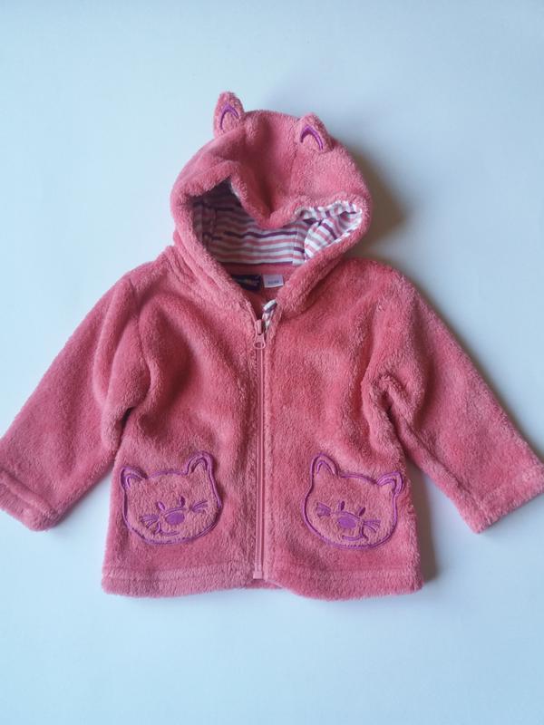 Мягкая, яркая кофточка фирмы Lupilu с капюшоном, кармашками и ушками . р 62/68 на 2-6 мес ориентируйтесь на замеры 📏длина 32 ПОГ 28 рукав 22 код бу4