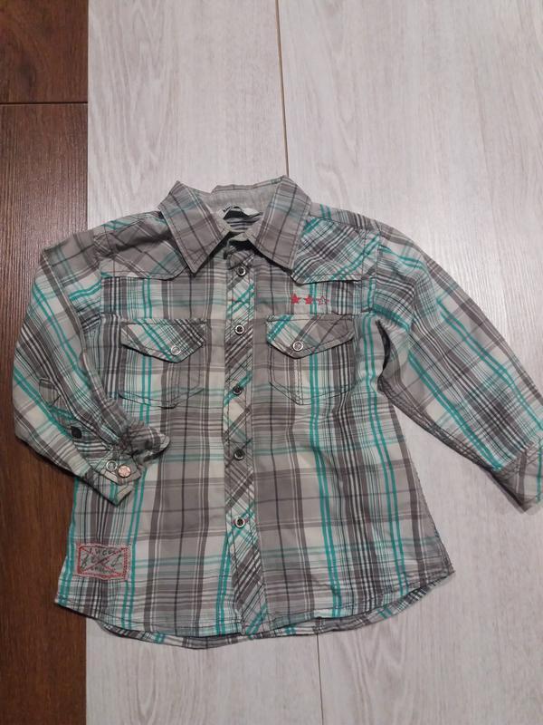 Нарядна сорочка для маленького модника бавовняна сорочка Kids . размер 86, длина 37 ПОГ 28 . код бу9