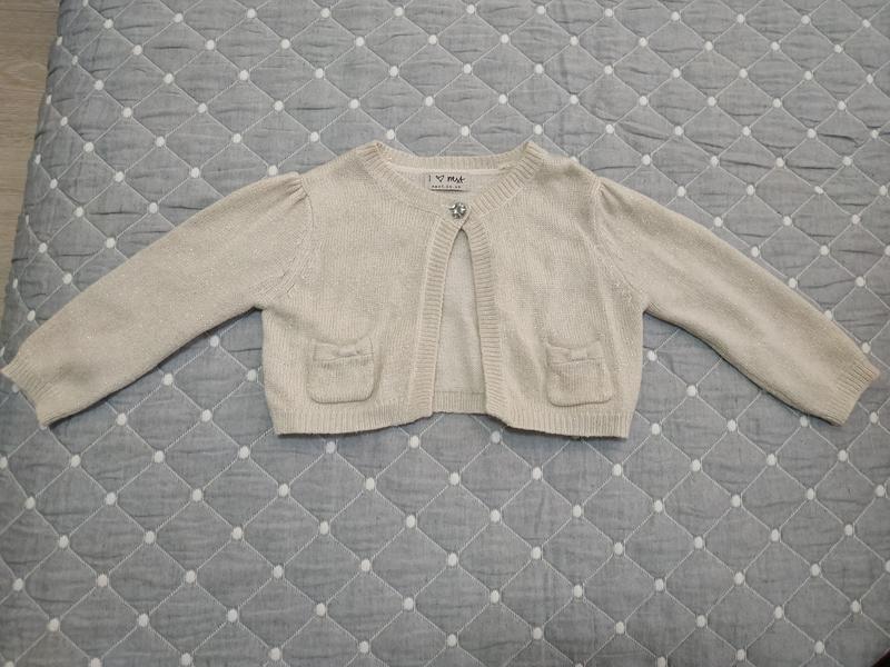 Болеро, размер 12-18 мес, но ориентируйтесь на замеры, мы одевали в 2 года. Фирма next. Болеро в идеальном состоянии.