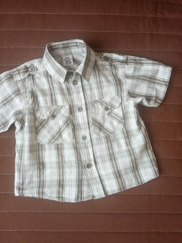 Детская летняя рубашка в клетку на мальчика klitzeklein 80/86 см короткий рукав 9-12-18 ме...