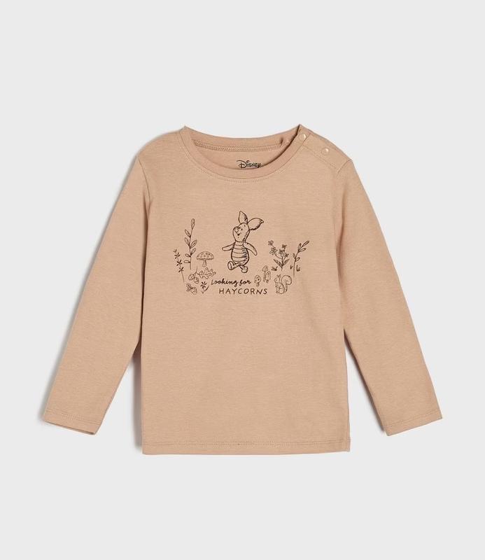 Лонгслив для девочки Disney от Sinsay: -размер на рост 80 см (9-12 месяцев); -склад: 100% - бавовна; -кругла горловина; -длинные рукава; -застежка на кнопки (беля горловины); -принт с персонажами Disney; -цвет: кофейный.