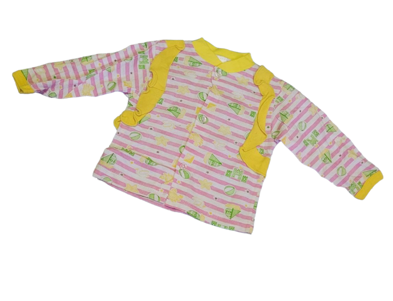 Кофтина для малышей на пуговицах с длинным рукавом. Изготовлена из натуральной ткани, благодаря прямому крою обеспечивает свободу движений ребенка. В наличии размер: 44 (рост 69-74 см)