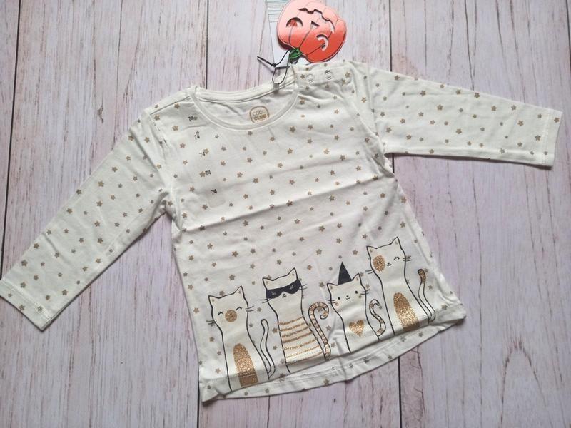 Регланчик молочного цвета с золотистыми звездочками на девочку 74 см. Бренд Cool club. Длина 32/35 Ширина 25 Рукав 25,5 см