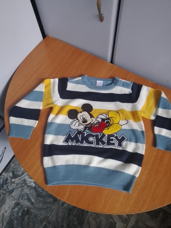 Красивій модній джемпер Принт Микки Маус. Дисней. Унисекс, подойдет как девочке, так и мальчику. Размер 86. Замеры: длина 35 см, подмышки 30 см., плечо 6 см + рукав 27 см. Состав: 54% акрил, 46% хлопок. Состояние идеальное, новой вещи. Доставка: Оплата на карту Приват Банка + 1 % от суммы (комиссия банка за снятие наличных денег с карты)