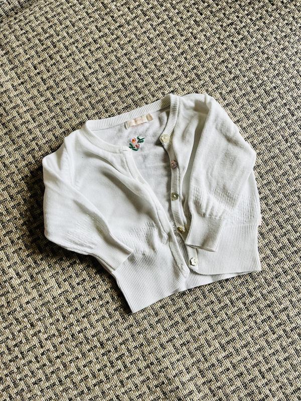 Біла кофтинка для дівчинки тонкої машинної вʼязки