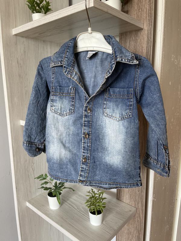 Джинсова сорочка для хлопчика, тоненький джинс, стильна, На возраст 1-год, Стан - идеальный