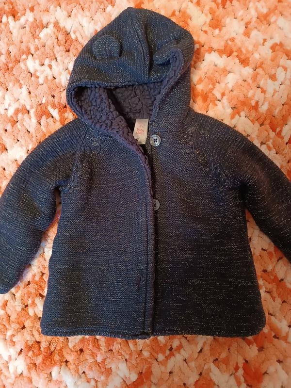 Отличная теплая клетка на осень, весну. На капюшоне есть ушки. Синий цвет, с люрексом.