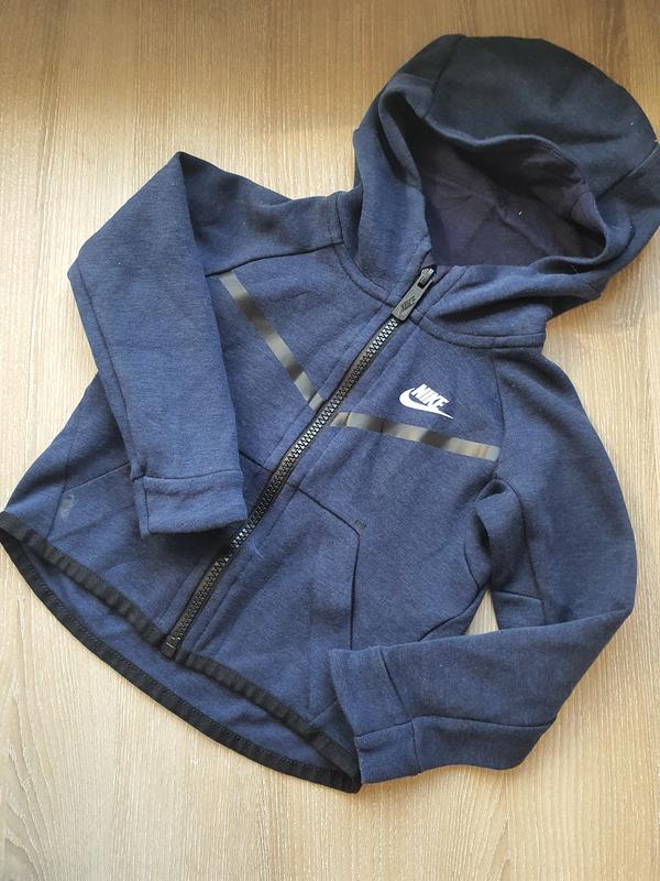 Затишна та тепла дитяча олімпійка з фірмовим логотипом торгової марки Nike на грудях та повноцінною, довгою блискавкою сподобається маленьким шукачам пригод. Стильна модель відрізняється вільним кроєм, який гарантує максимальний комфорт і бездоганну посадку, яка не сковує свободи дій малюка. Великий втачний капюшон та високий комір дозволяють надійно утеплитися у разі раптового похолодання. Широкі еластичні манжети та подовжена задня частина забезпечують додатковий захист від продування.Толстовка оснащена місткою парою накладних кишень-кенгуру, які стануть у нагоді, щоб зігріти руки від холоду під час прогулянки на свіжому повітрі. Модель декорована світловідбиваючими елементами та контрастним логотипом бренду на грудях стан:нової