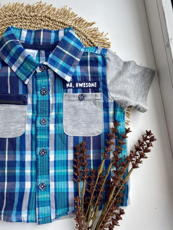 Рубашка с коротким рукавом в клетку для мальчика. В идеальном состоянии. ✅Размер: 6-12 месяцев 🧺 Все вещи постираны и выглажены паром. ❤️Пишите, отвечу на все ваши вопросы. С радостью сделаю дополнительные замеры и фотографии.