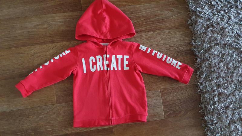 Толстовка из облегченного футера с принтом, капюшон без подкладки, молния спереди, а также рельефная трикотажная резинка внизу рукавов и по нижнему краю. СоставХлопок 100% размер на рост 86,12-18 мес Дефектов нет, цвет более приглушенный , не застиранный, изначально был таким, не такой яркий как получился на фото. Длина по спинке 35 Ширина под ручками 31 Длина рукавчика от горловины 34, от плеча 28 Возможна погрешность +- 1см. Все вопросы пожалуйста до покупки) с радостью отвечу)