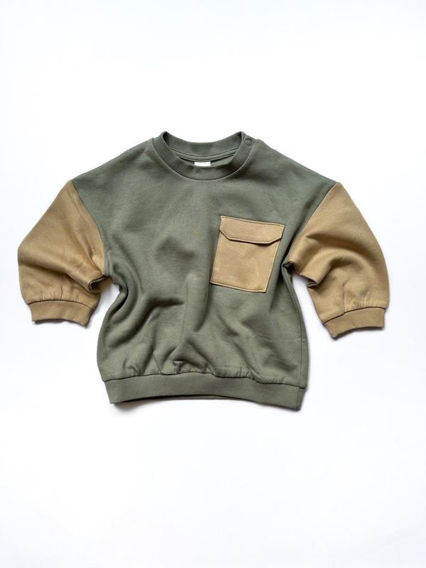 Світшот на флісі з кишенею в беж та хакі кольорах. Розміри в наявності: 18-24 міс.