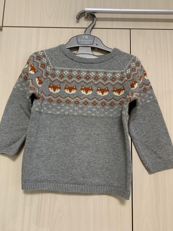 Свитер на мальчика фирмы HM. Стан идеален, одевали два-три раза, как новый.Размер на рост 80-86 см. Замеры: Длина от плеча 36 см Ширина под руками 29 см Длина от горловины до конца рукава 34 см
