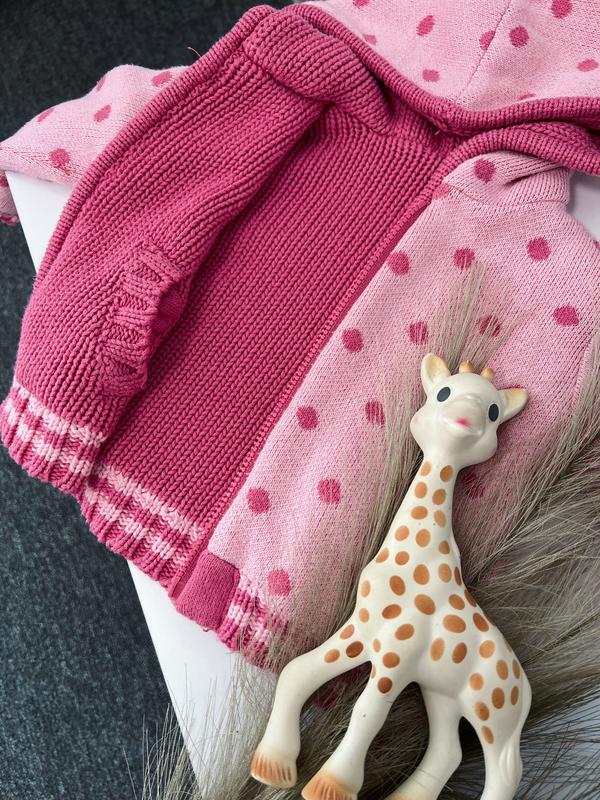 Двох стороння кофта, розмір вказаний 0-3 але насправді ми носили в рік