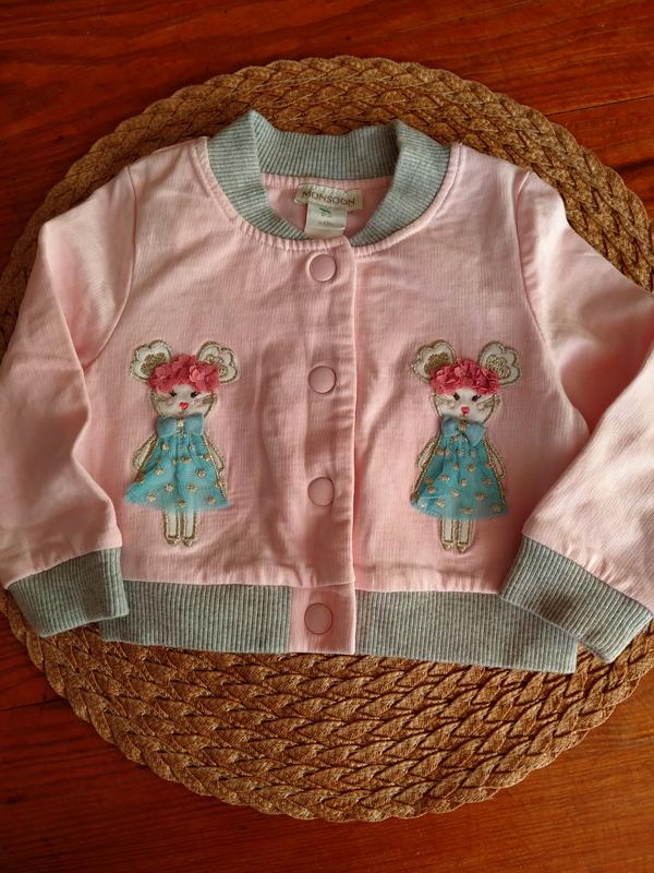 отличная кофточка с яркой аппликацией на девочку от рождения до трех месяцев, состояние новой, длина 23, рукав 25