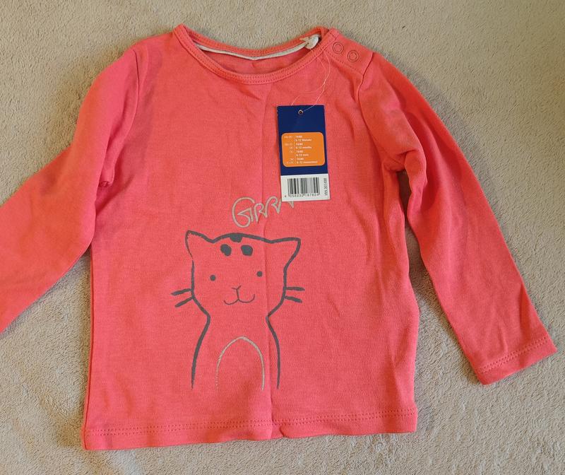 Качественная хлопковая кофточка кораллового цвета немецкого бренда lupilu. Длина от плеча-33, рукав- 28.5.