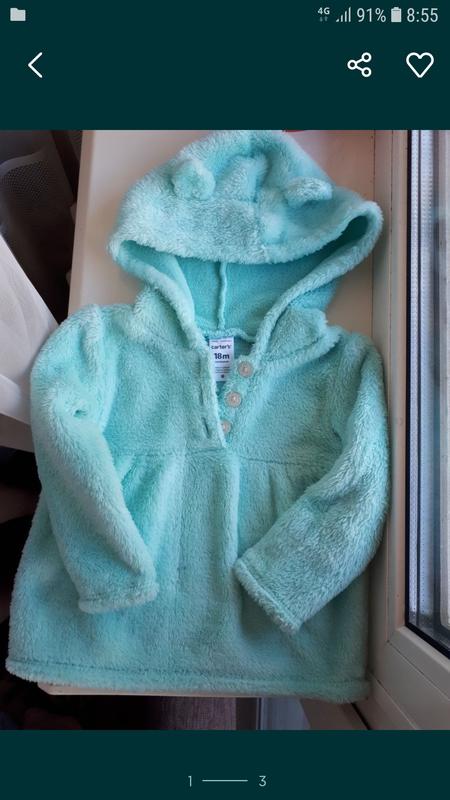 Продам теплую флисовую кофточку для девочки фирмы Carters. Размер 18 месяцев. Цвет голубой как на фото 3.