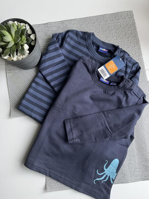 Набор хлопковых термо-регланов с начесом Lupilu - Синий+Полосатый Размер 86/92