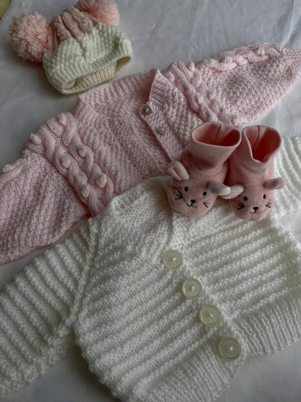 Кардиганы в идеальном состоянии.Белый и розовый на возраст 0-3,3-6 месяцев и будет еще дольше.МØкоторые и приятные к телу.