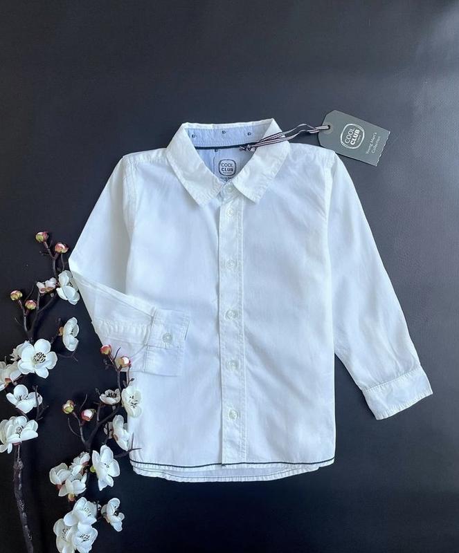 Белая рубашка для мальчика 100% бавовна 1,5 лет (86) Длина 36.5 Ширина 29.5 Рукав 28.5