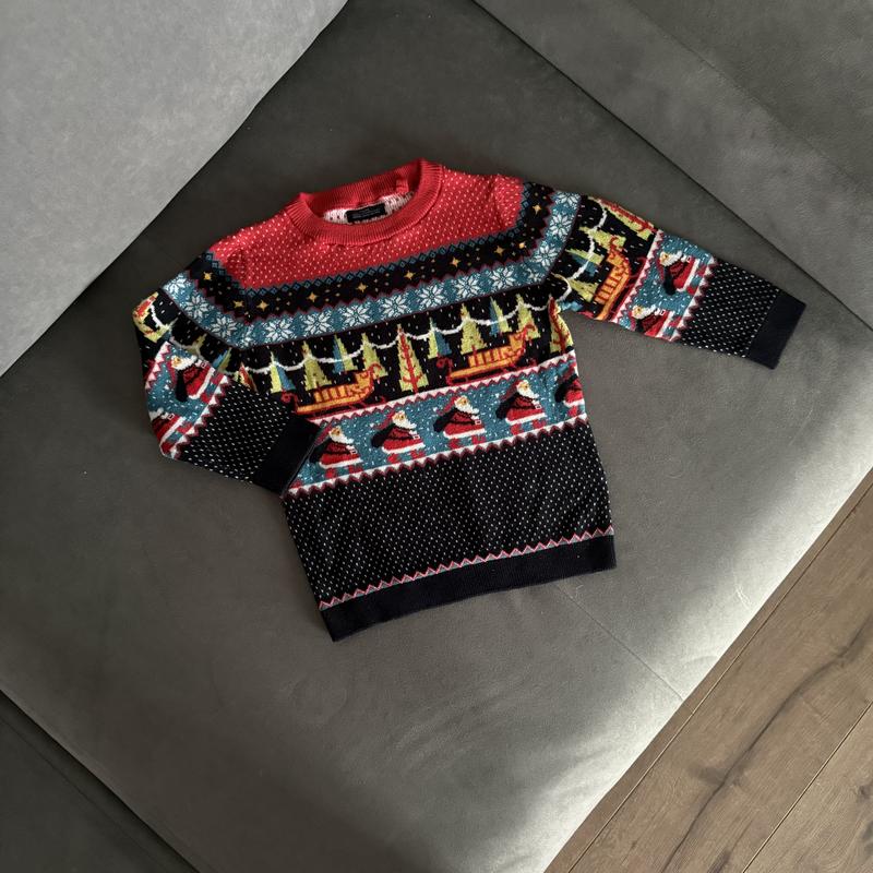 Класна новорічна кофта фірми next. На вік 18-24 місяців . Довжина 42 см, плечі 28 см, рукав 33 см