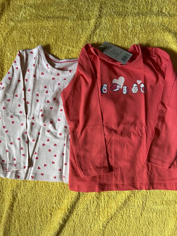 Набор 2 регланов Новые с биркой Размер 86/92 см на 12-24 мес Хлопковые. Замеры: в сердечки, длина 34 см , ПОГ 29 см Длина рукава от плеча 30 см Реглан с Божьими коровками Длина 39 см ПОГ 30 см Длина рукава от плеча 32 см
