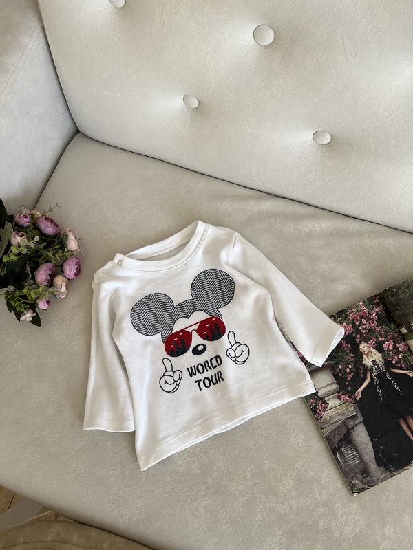 Хлопковая кофта белого цвета бренда Croocker Baby Легкая и удобная. Есть маленькое пятно у шеи, возможно отстегивается. Подойдет до 9 месяцев Замеры: 1/2 ОГ 30-36 1/2 ОТ 27-32 Длина 30 Рукав 22 Плечи 24-27