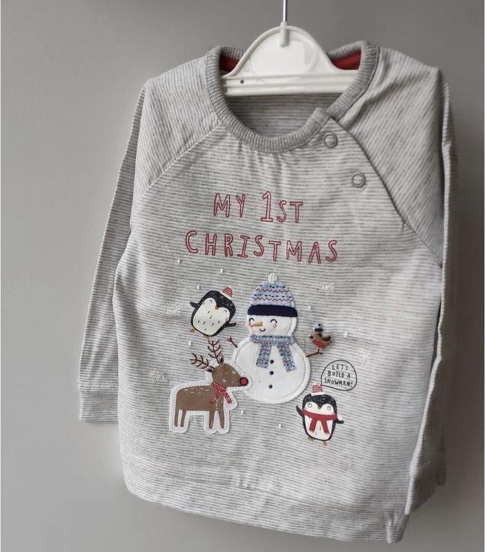 Новорічний реглан кофтинка від George 🏷️100% бавовна 📐Розмір-9 міс, 12 міс Підійде хлопчику і дівчинці