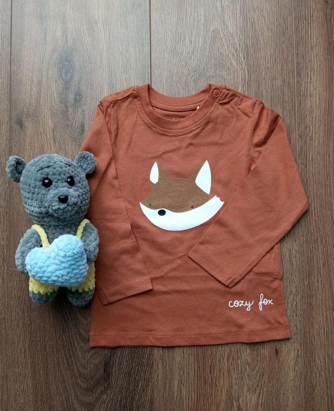 В наличии лонгслив для мальчика имеет кнопочки у горловины. Лисичка фактурна. Состав: 100% хлопок Размеры: 80-86 Замеры ниже 80-86 длина 36см, ширина 28см, рукав 30см