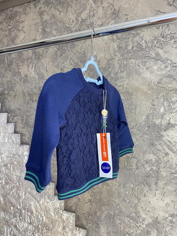 Утепленная кофточка темно-синего цвета от бренда Original marines. Кружево на подкладке, легкое утепление флис. Сзади рабочие кнопки. 🏷️Размер 6-9 месяцев ❕Новая, с биркой❕
