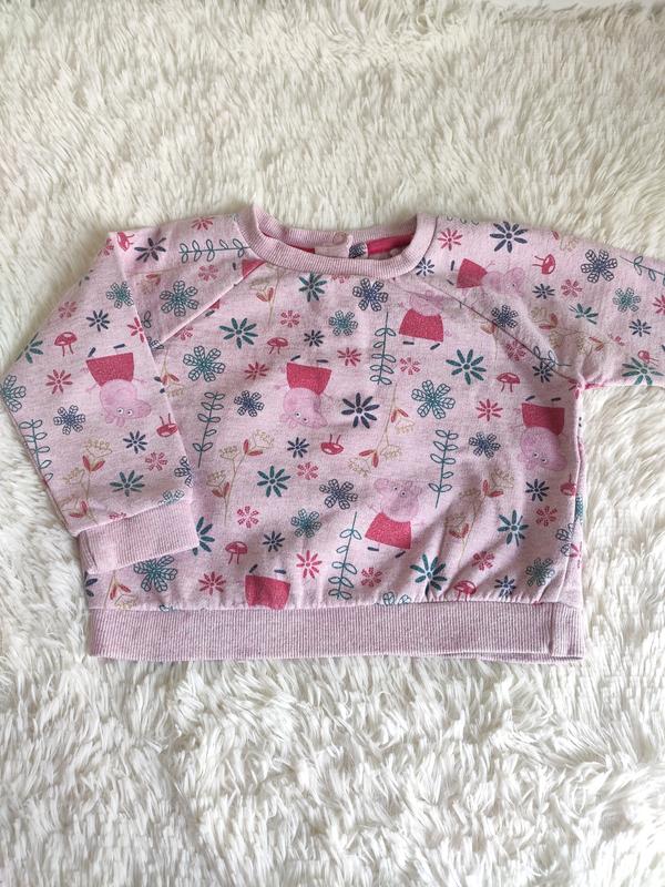 мягкий свитшот с Пеппой. размер указан на 9-12 месяцев. ширина 30 длина 30 рукав, регланом от горловины, 31