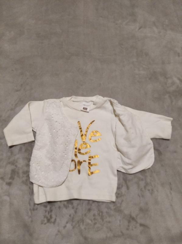 Кофточка с имитацией двойки На 6-9 месяцев В идеальном состоянии, но спереди на клей была посажена розочка (она отклеилась) По всем дополнительным вопросам обращайтесь в любое время