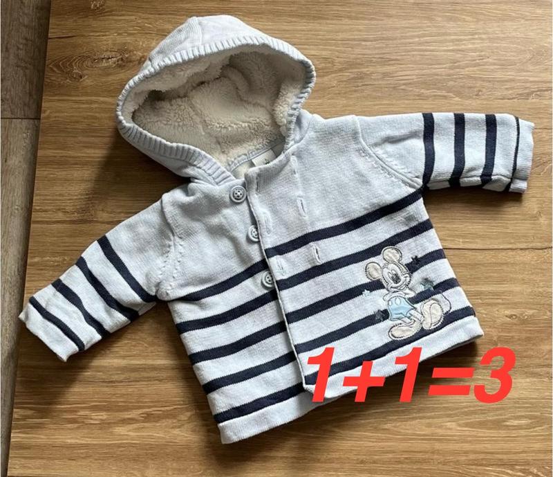 Купите 2 вещи, а 3 вещь в подарок 🎁 🎁🎁 Кофта в идеальном состоянии без дефектов, подойдет на теплую весну в качестве верхней одежды, капишон мех спинка флис. Размер 0-3 месяцев, замеры да.