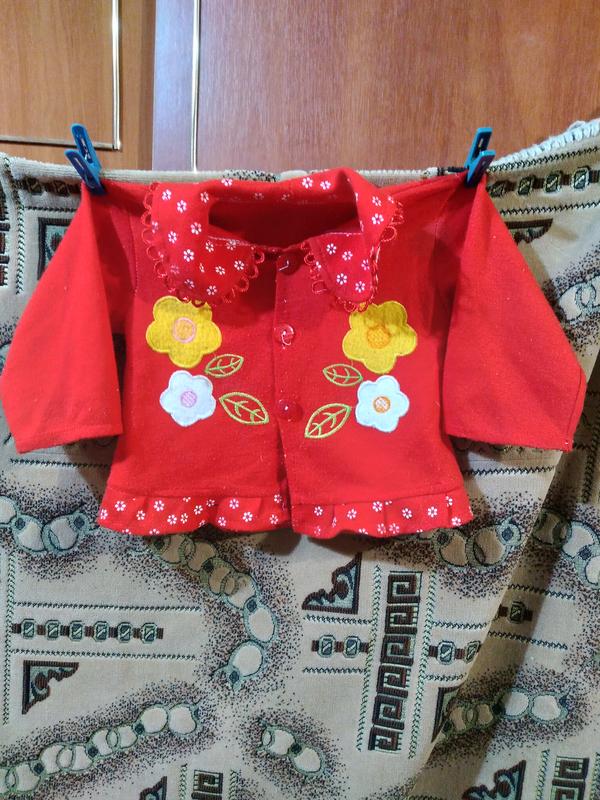Кофточка для младенцев в идеальном состоянии, ширина плеч 27 см. длина рукава 24 см. полуобъем груди 29 см. длина кофточки 32 см.