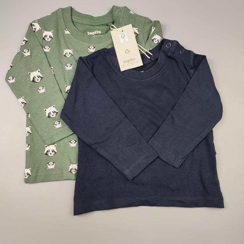 Lupilu (Німеччина) Ціна 110 грн за 1 Набір бавовняних регланів на малюка. Чудова якість, зручні та практичні. 100% бавовна. Є застібки на плечі. Розмір 62/68 Вік 2-6 місяців довжина 27, ширина 26.
