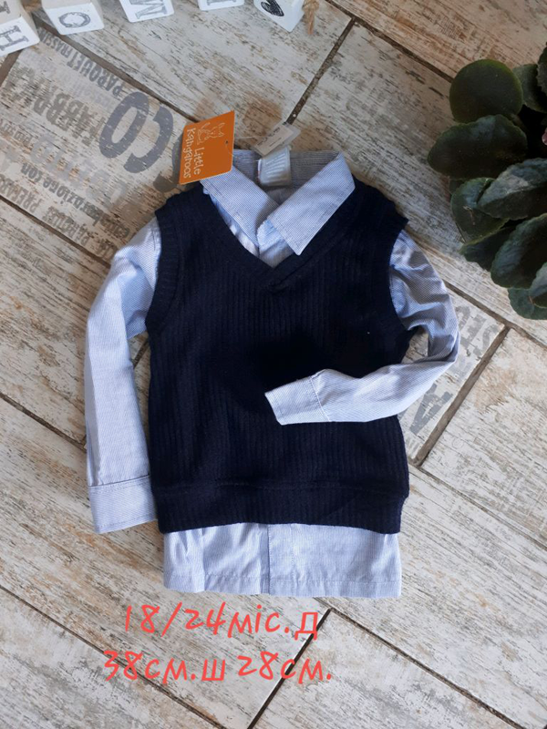 Тип одягу: Сорочки Кілька примірників у наявності Дуже гарна сорочка з жилеткою. Можна розєднувати.18/24міс
