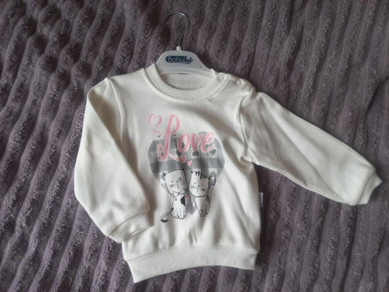 Милый свитшот,удобные застежки по горловине. Новый. Кофтина была в составе набора, поэтому без бирки уже. Размер 12-18мис.
