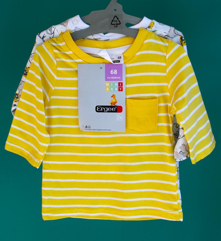 Этот комплект набор из двух топов с длинным рукавом очень удобен для малышей, и им понравится узор. Эта футболка для маленьких мальчиков имеет кнопки застежки на плечах и ребристый вырез. • Открывание плеч на кнопке • Длинный рукав • Кругла горловина • Одиночный трикотаж • 100% органический хлопок • Можно стирать в машине Размер 68 см, на возраст 4-6 месяцев Замеры: Рукав 22 см Плечи 20 см Под руками 24 см Общая длина 35 см