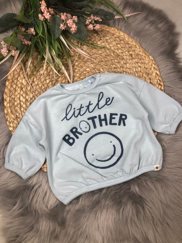 Кофта 0-3 мес., свободного кроя, со спущенным рукавом. в красивом состоянии, стрейчевый трикотаж., велюровая надпись. Для удобства одевания на одном плече есть кнопки. Длина от плеча 26 см. Ширина под ручками 29,5 см. Рукав вместе с плечом от горловины 24 см.