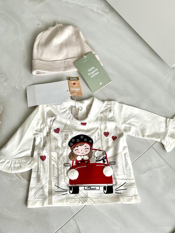 Детская новая очень красивая кофта и шапочка Кофта-275 Chicco Шапочка -120 h&m( очень легенька) Размер 0-3 мес Набором 350