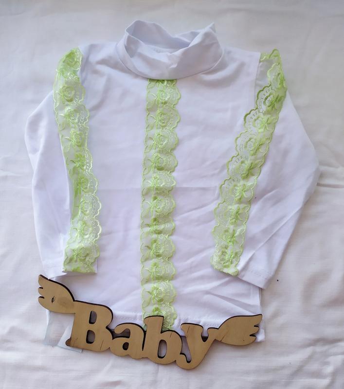 Кофта, лонгслів із мереживом Тканина інтерлок Розмір 28. Довжина 33 см Довжина рукава від плеча 27 см Напівобхват грудей 24,5 см