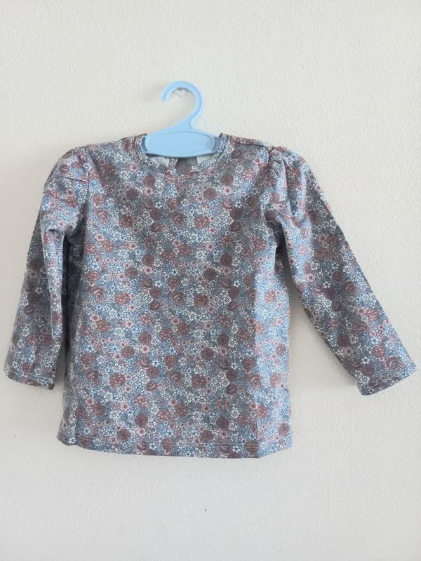 Кофточки из мягкого хлопкового трикотажа H&M. Небольшое отверстие с пуговицей сзади на шее. Длинные рукава-буфы. Размер: EUR 80 UK 9-12 M есть голубая и в цветочки Длина 35 см ПОГ 26 см Рукав 28/21 см EUR 86 UK 12-18 M только голубая Длина 37 см ПОГ 28 см Рукав 30/23 см Цена 120 грн