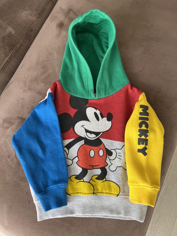 Оригінал Якісне худі Яскравий принт Міккі, спереду-накатка, на рукаві проризинений напис На тонкому флісі Стан ідеальний Розмір 9-12м