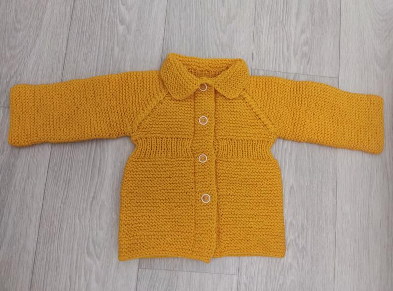Детская вязаная кофта. Ручная работа. На 1,5-2 года. Состояние новое. Без дефектов. Длина по спинке 33 см. Длина по спинке от подмышки 23 см. Длинна рукава от подмышки 20 см. Обхват груди 50 см. Застежка: пуговицы. Цвет: желтый, как на фото. Материал: пряжа, 50% шерсть, 50% акрил. Пряжа очень мягкая. Невероятно красивый и интересный узор. Нова. Не одягалась. Невероятно красивая, стильная, модная, яркая, легкая и очень теплая.