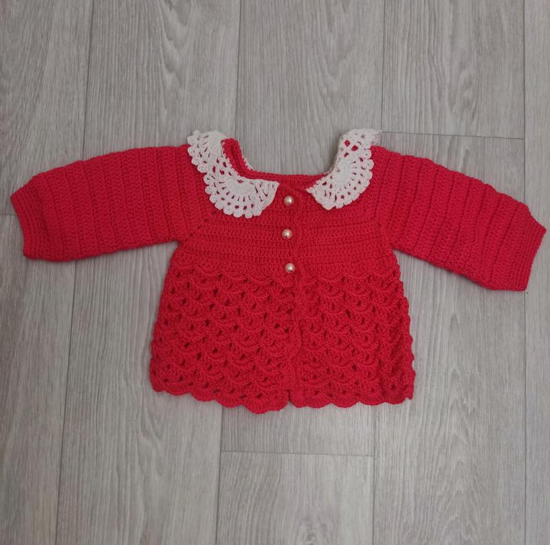 Детская вязаная кофта. Ручная работа. На 1-1,5 года. Состояние новое. Без дефектов. Длина по спинке 29 см. Длина по спинке от подмышки 17 см. Длинна рукава от подмышки 17 см. Обхват груди 48 см. Застежка: пуговицы. Цвет: красный, как на фото. Материал: пряжа. Пряжа очень мягкая. Невероятно красивый и интересный узор. Нова. Не одягалась. Невероятно красивая, стильная, модная, яркая, легкая, удобная и очень теплая.